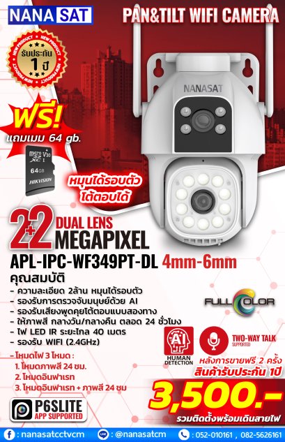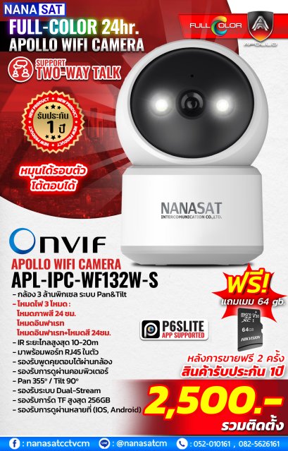 Apollo รุ่น APL-IPC-WF349PT-DL กล้องวงจรปิดไร้สายเชียงใหม่ ภายใน/ภายนอก กันน้ำ กันแดด กล้องวงจรปิดเชียงใหม่ หลังการขายฟรี 3ครั้ง สินค้ารับประกัน1ปี 3,500.- (รวมติดตั้งพร้อมเดินสายไฟ) แถมฟรี เมมโมรี่การ์ด 64 Gb.สนใจติดต่อ : 082-5626161 , 086-6701900 Line: @nanasatcm