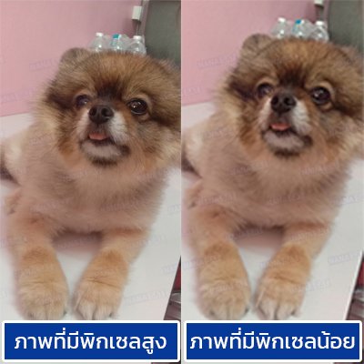 ตัวอย่างภาพ การเปรียบเทียบระหว่างภาพที่มีพิกเซลสูง และ ภาพที่มีพิกเซลน้อย