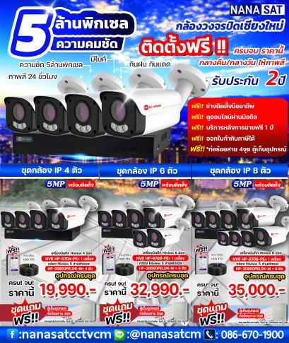 ชุดกล้องวงจรปิด IP Camera ความคมชัด 5 MPเปลี่ยนภาพเที่ยงคืนเป็นเที่ยงวัน HP-30B50PELDK-M