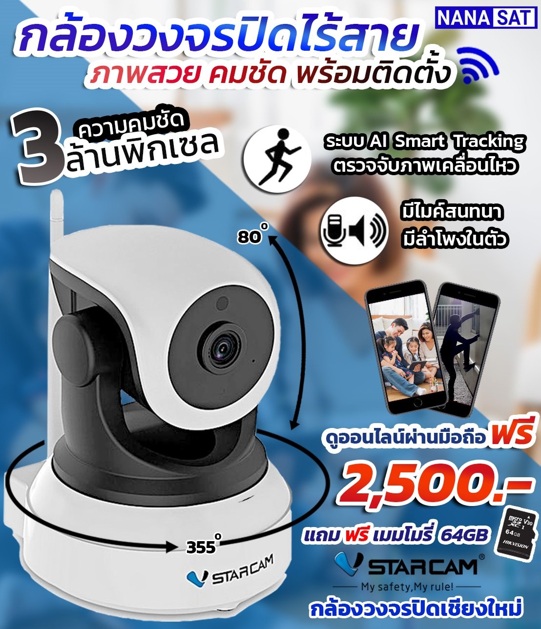 บริษัท นานาแซท อินเตอร์คอมมิวนิเคชั่น จำกัด บริการติดตั้งกล้องวงจรปิด กล้องวงจรปิดไร้สาย กล้องวงจรปิดแบบโซล่าเซลล์ กล้องพลังงานแสงอาทิตย์ ไฟโซล่าเซลล์ จานดาวเทียม ประตูรีโมท ประตูอัตโนมัติ หรือบริการสินค้าอื่น ๆ ติดต่อได้ที่