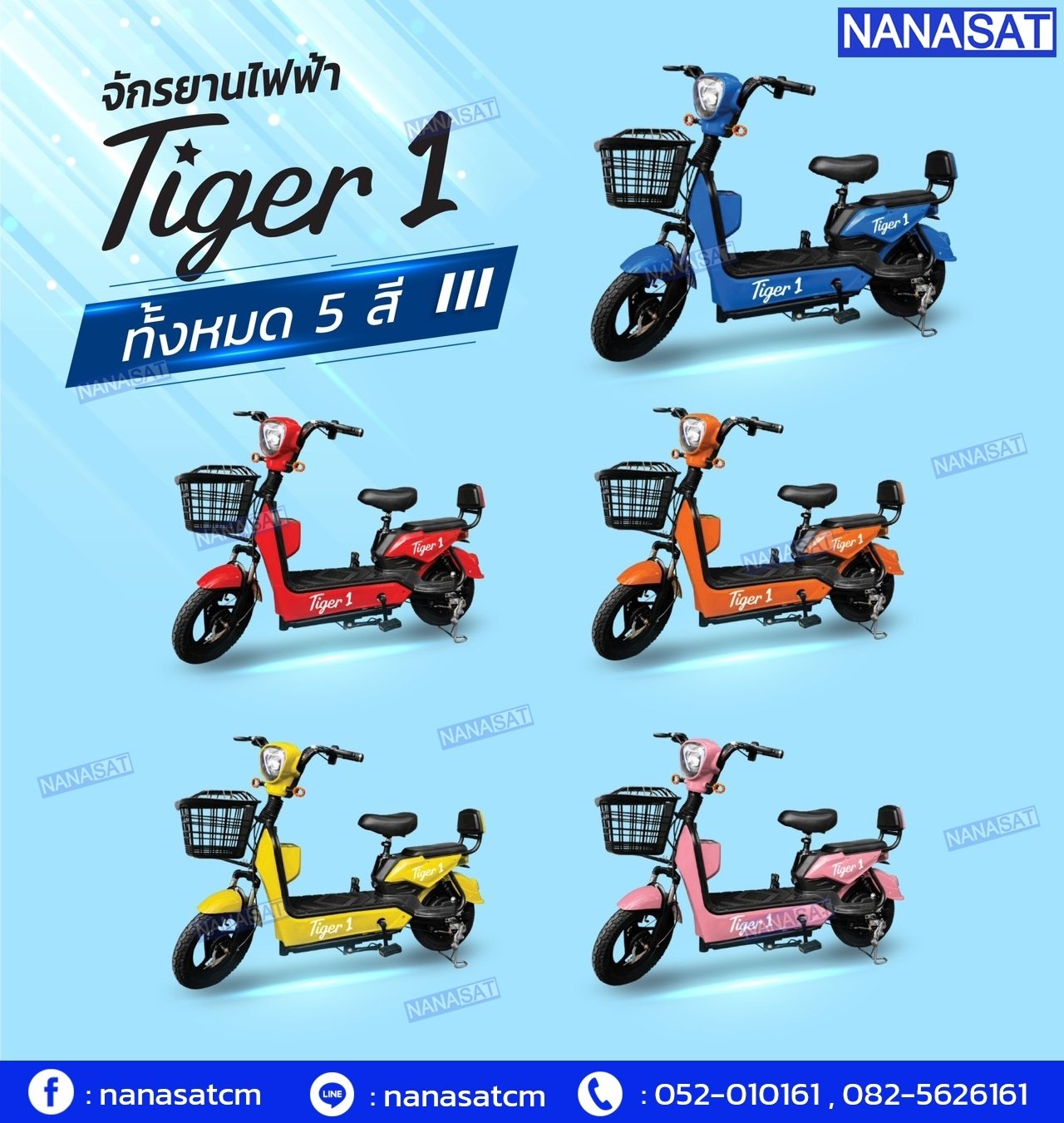 จักรยานไฟฟ้า Tiger 1 เป็นรถจักรยานรุ่นใหม่ล่าสุดที่ บริษัท นานาแซท อินเตอร์คอมมิวนิเคชั่น จำกัด ได้มีการประชุมและเริ่มนำจัดจำหน่ายเพื่อที่จะตอบโจทย์การใช้งานที่เข้ามาและเหมาะสมกับเทคโนโลยีในปัจจุบัน เพื่ออำนวยความสะดวกในการใช้งานของยุคปัจจุบันที่มีการนิยมลดภาวะโลกร้อนด้วยการใช้พลังงานไฟฟ้า และเป็นมิตรต่อสิ่งแวดล้อม และช่วยลดค่าใช้จ่ายค่าน้ำมันที่เพิ่มสูงในปัจจุบัน จึงทำให้เกิดการนำรถจักรยานไฟฟ้า TIGER BIKE รุ่น TIEGR 1 มาจัดจำหน่าย โดยมีรายละเอียดคุณสมบัติ ดังนี้